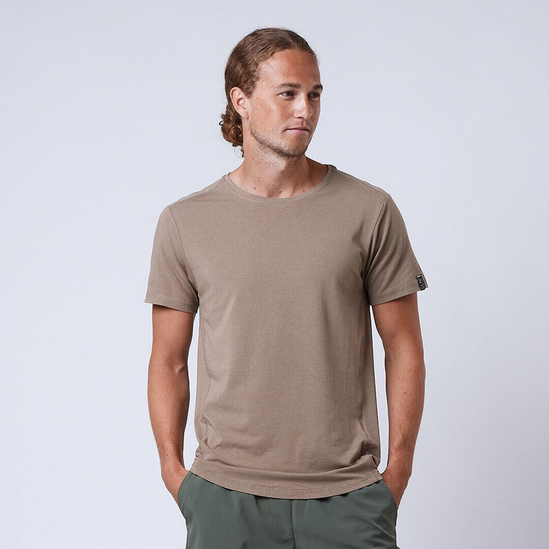 Bambu t-shirt herr Modern passform 46% Bambu, 49% Bomull, 5% Elastan Maskintvätt Modellen har storlek M, är 181cm och väger 75kg