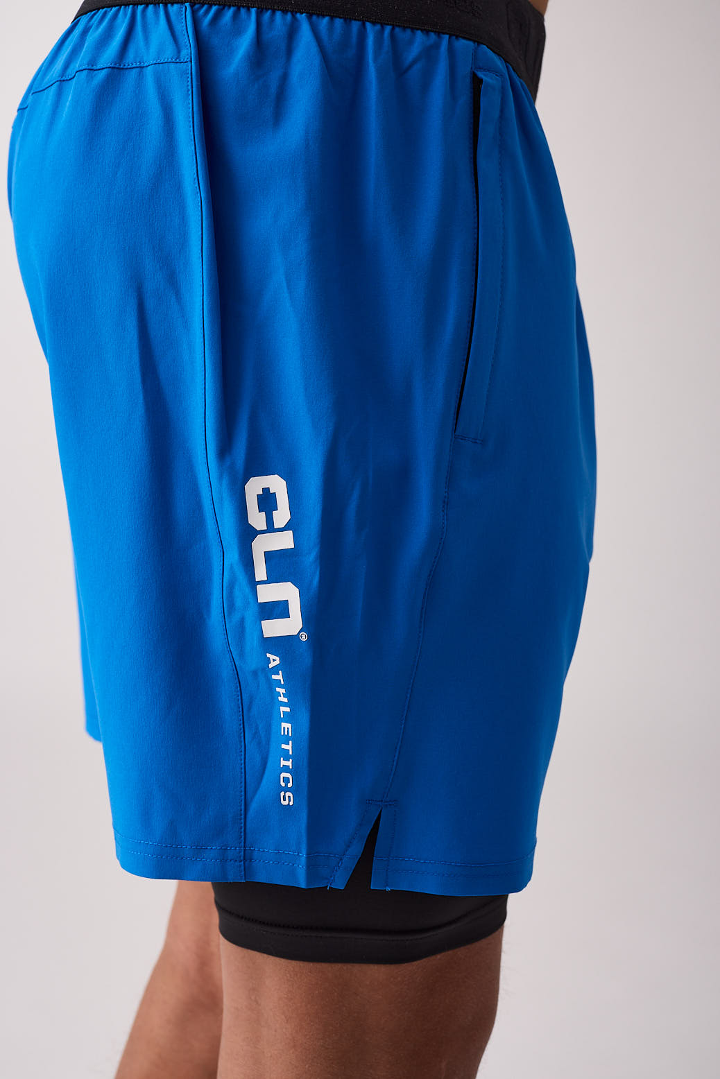 Men's grey training shorts Built-in short tights 2 in 1 shorts Two open pockets Elastic waistband CLN print on back and front Regular fit 88% Recycled Polyester, 12% Elastane Machine wash The model is wearing size M, is 188cm and weighs 80kg Sizing 29 - 31 Small 31 - 32 Medium 32 - 33 Large 33 - 34 X-Large The model is wearing size M, is 187cm and weighs 85kg