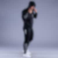 Modellen har storlek M, är 178cm och väger 85kg"