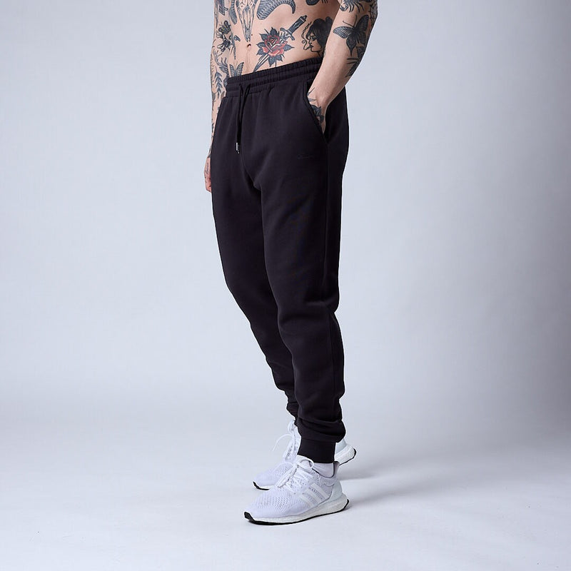 Sweatpants med fickor. Core sweat pant för herrar är ett par riktigt sköna mjukisbyxor för uppvärmning eller avslappning. De är gjorda av ett tjockt tyg med borstad och mjuk insida och mudd i bensluten. Snörning i midjan och två öppna fickor. Broderad CLN-logga fram. Det självklara valet oavsett om du ska till och från träningen, ta det lugnt hemma i soffan eller vill ha en sportig och stilren look på stan.