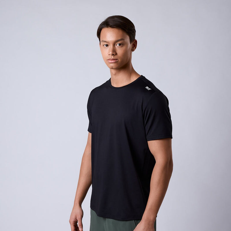 Svart tränings t-shirt i mesh material Passar löpning & högintensiv träning Hög fukttransportförmåga Normal passform 82% Återvunnen polyester, 8% Polyester och 10% Elastan Maskintvätt Modellen har storlek L, är 188 cm och väger 80kg