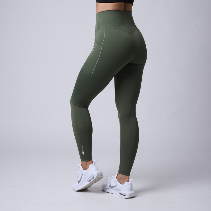 Gröna träningstights med fickor Tight passform Hög midja 70% Återvunnen polyamid, 30% Elastan Maskintvätt Modellen har storlek S och är 170cm lång