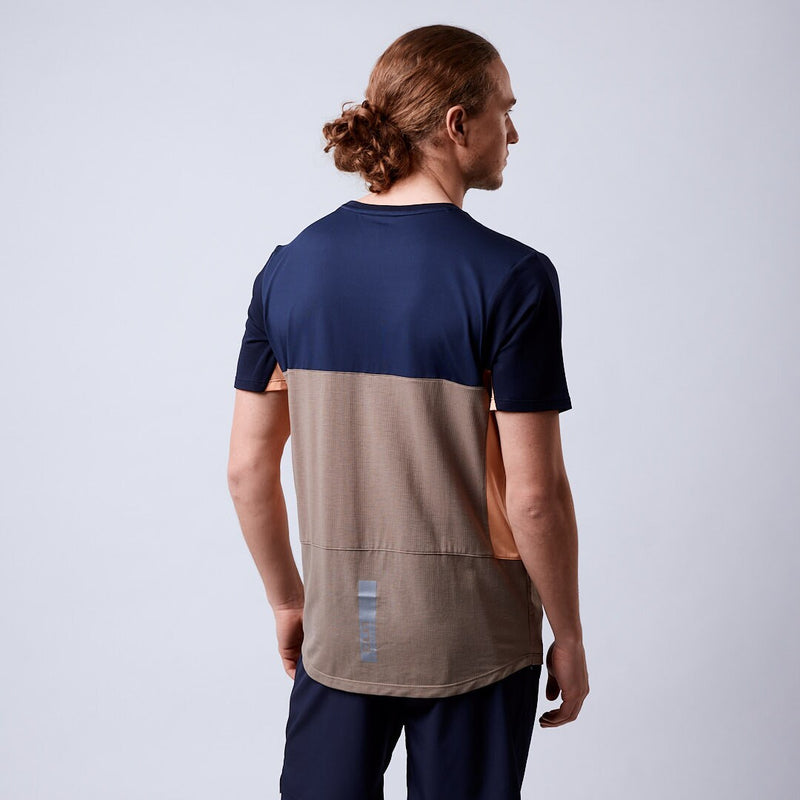 Tränings t-shirt herr Normal passform Huvudmaterial: 69% Recyled polyester, 17% Lyocell, 9% Spandex, 5% Nylon Sidopaneler och rygg: 82% recycled polyester, 8% polyester, 10& spandex Maskintvätt Modellen har storlek M, är 181cm och väger 75kg