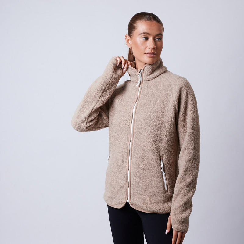 Beige fleecejacka dam Normal passform 100% Återvunnen polyester Maskintvätt Modellen har storlek S och är 170cm lång