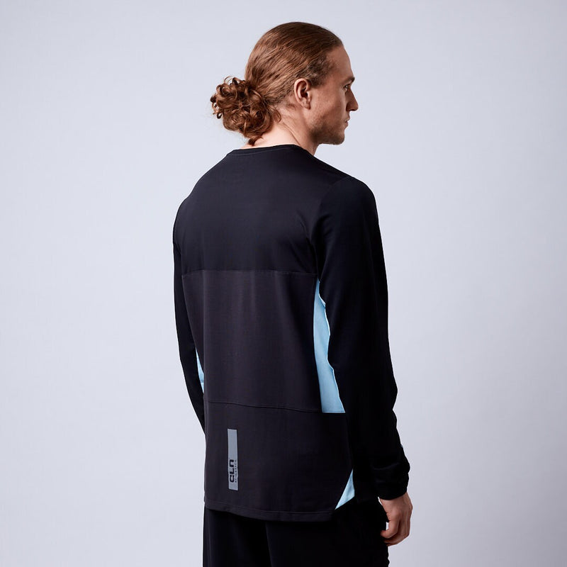 Långärmad tränings t-shirt herr Normal passform Huvudmaterial: 69% Recyled polyester, 17% Lyocell, 9% Spandex, 5% Nylon Sidopaneler och rygg: 82% recycled polyester, 8% polyester, 10& spandex Maskintvätt Modellen har storlek M, är 181cm och väger 75kg