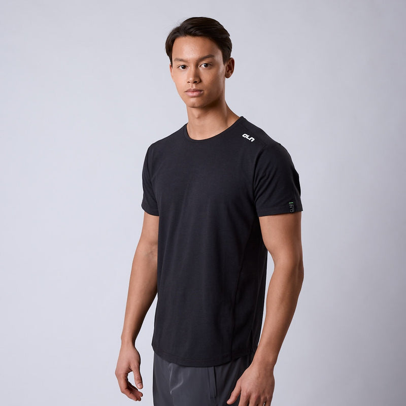 Grå tränings t-shirt i bambu Modern passform 46% Bambu, 49% Bomull, 5% Elastan Maskintvätt Modellen har storlek L, är 188 cm och väger 80kg