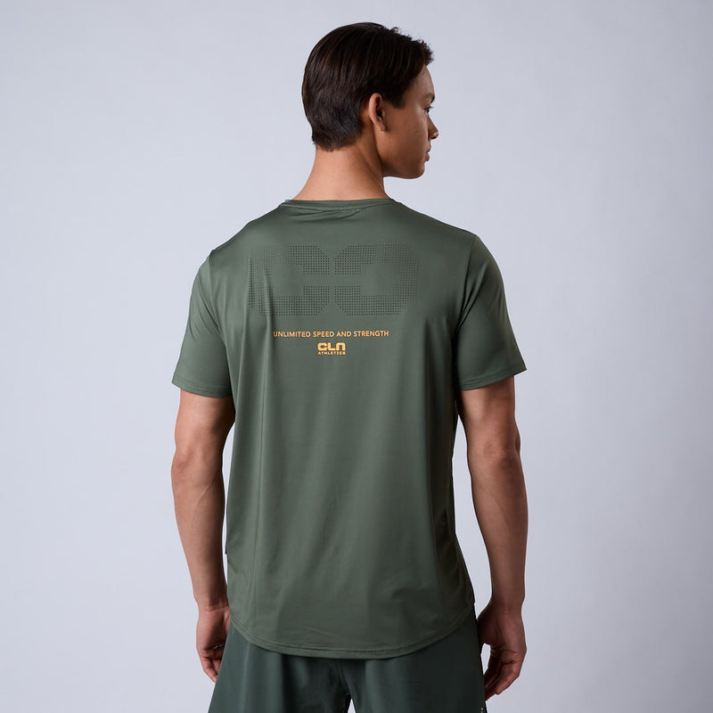 Grön tränings t-shirt i funktions material Passar högintensiv träning Imponerande fukttransporterande egenskaper Normal passform 88% Polyester, 12% Elastan Maskintvätt Modellen har storlek L, är 188cm och väger 80kg